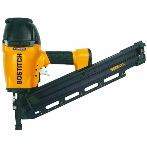 688-F28WW Features: -Lightweight magnesium design for added durability..-Patented push button adjustable depth guide sets nail to desired depths quickly and conveniently.-Nail Diam: 0.113 in [Min], 0.131 in [Max].-Cartridge Cap.: 100 [Max].-Operating Pressure: 80.0 psi [Min], 120.0 psi [Max].-Operating Type: Sequential Trip (Nose Contact & Trigger Activated).-Impact: 1050.00 in lb.-Inlet Size: 1/4 in (NPT).-Handle Type: Centered Pistol Grip.-Body Material: Magnesium.-Wt.: 7.60 lb.-Price is for 1 Each. Includes: -Includes factory installed sequential trigger and exclusive Smart Trigger. Dimensions: -Nail Length: 2 in [Min], 3 1/2 in [Max].Read more Industrial High Power Stick Framing Nailer